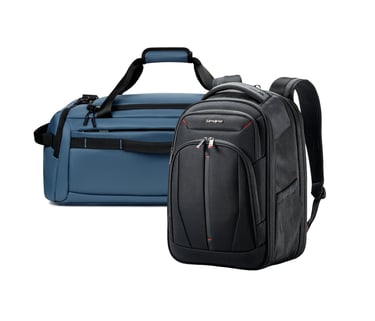Maletas, mochilas y maletines de las marcas Samsonite y Crepier, además de accesorios prácticos como parrillas, cilindros ahumadores y coolers.